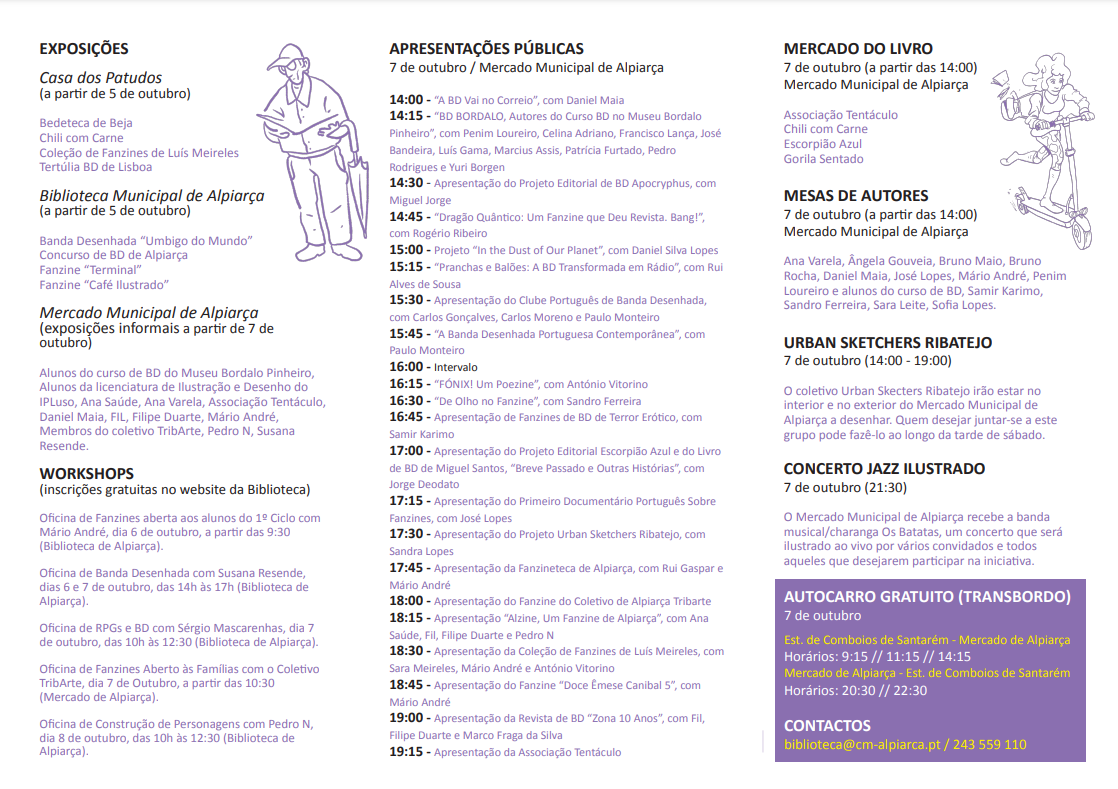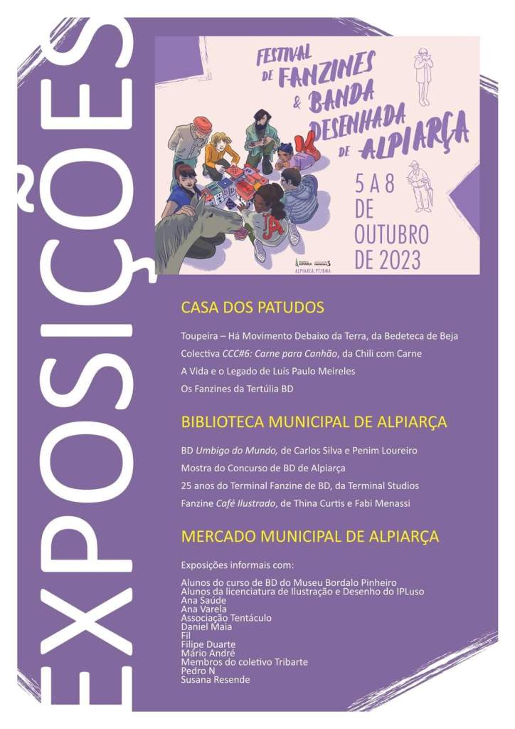 Começa hoje o Festival de Fanzines e Banda Desenhada de Alpiarça, organizado pela Associação Tentáculo. Um evento que há muito era necessário, não só pelo carácter formador das zines (de públicos, de escritores, de projetos) como por descentralizar (uma vez mais, nisso a BD tem o seu mérito) a vida cultural de Lisboa.