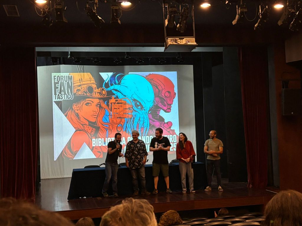 Recebemos valiosos comentários da plateia, incluindo do Luis Filipe Silva, que nos falou de mais alguns livros como “o “A Espinha Dorsal da Memória”, que foi publicado em 1989 pela Caminho e a “A Dança dos Ossos – Antologia do Conto Gótico Luso-brasileiro”, da colecção